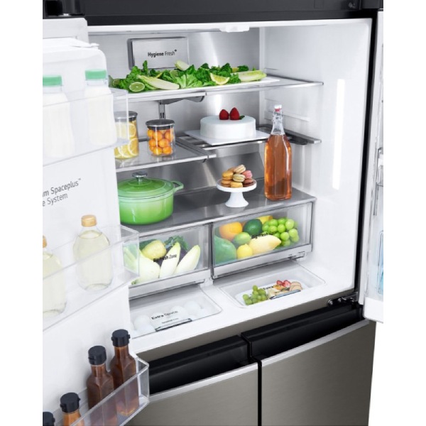 درب یخچال شامل 8 قفسه است. این طراحی فضای کافی برای نگهداری انواع مواد غذایی فراهم میکند. یخچال فریزر دارای یک یخساز اتوماتیک با طراحی باریک به نام SpacePlus Ice System است که فضای کمی را اشغال کرده و قابلیت خاموش شدن نیز دارد. فیلتر آب یخچال نیز در قسمت پایین یخساز قرار دارد که به راحتی میتوان به آن دسترسی پیدا کرد.