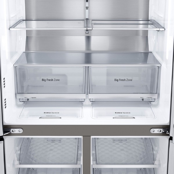 این یخچال فریزر با ظرفیت 889 لیتر طراحی شده است که 482 لیتر آن مربوط به قسمت یخچال و 407 لیتر آن به قسمت فریزر اختصاص دارد. یخچال این مدل در قسمت بالا و فریزر در قسمت پایین قرار دارد. یخچال این دستگاه دارای 3 طبقه و 2 کشوی بزرگ برای میوه و سبزیجات است که به نام Big Fresh Zone شناخته میشوند. این کشوها قابلیت تنظیم رطوبت دارند تا بتوانید شرایطی مناسب برای نگهداری میوهها و سبزیجات فراهم کنید و تازگی آنها برای مدت بیشتری حفظ شود. طبقات یخچال از شیشه مقاوم به حرارت ساخته شدهاند، بنابراین میتوانید با خیال راحت از آنها برای نگهداری مواد غذایی سنگین استفاده کنید. یکی از این طبقه ها دارای قفسه تاشو Folding Shelf است به این صورت که شما می توانید طبقه را تا کنید و جا برای مواد غذایی دیگر باز کنید.