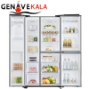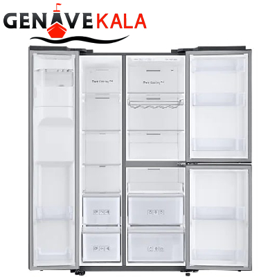 یکی از جزئیات مهم در هر کالایی ظاهر و طراحی آن بوده زیرا کاربران با توجه به طراحی محصول مورد نظرشان را انتخاب و یا خریداری می نمایند زیرا طراحی شیک در همه جا و در دکوراسیونی تاثیر زیادی دارد. این مدل یخچال ساید بای ساید به رنگ نقره بوده و رنگی مینیمالیستی بوده که با هر دکوراسیونی هم خوانی دارد. دارای 3 درب می باشد که بخش فریزر در قسمت چپ و دارای یک درب می باشد، قسمت راست آن بخش یخچال می باشد که دارای دو درب بوده، بر روی درب فریزر یخساز و آبریز اعمال شده. طراحی داخلی بسیار جادار بوده به طوری که به راحتی می توانید تمام مواد غذایی را در آن قرار دهید.