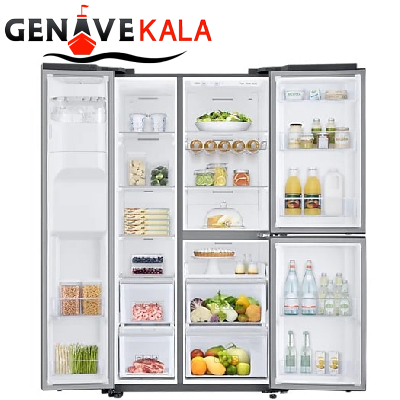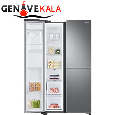 سامسونگ Samsung برند بسیار معروف در جهان که در عرصه های زیادی کالا هایی با کیفیت را تولید می کند تا بهترین ها را برای مخاطبانش به ارمغان بیاورد، شما کاربر عزیز برای یک بار هم شده از محصولات این کمپانی استفاده کرده اید و متوجه کیفیت و کارایی عالی آن شده اید. امروز می خواهیم در مورد یکی از یخچال سامسونگ ساید بای ساید مدل RS68 سه درب کمپانی کره ای سامسونگ حرف بزنیم. یخچال ساید بای ساید RS68 سه درب دارای طراحی شیک و جذابی است که توانایی سازگاری با دکوراسیون های مختلف را دارد. این یخچال از جنس بدنه با کیفیتی ساخته شده است که ضد زنگ نیز می باشد و همچنین بر روی بدنه این یخچال سامسونگ RS68N8650S9 لایه ضد اثر انگشت و لک استفاده شده است و همچنین دارای 3 درب است که هر کدام از این درب ها به منظور خاصی طراحی شده است و فضای منظمی را نیز به یخچال عرضه کرده اند. یخچال سامسونگ RS68N8650S9 دارای موتور کمپرسور اینورتر دیجیتال نیز است که صدای یخچال و همچنین مصرف انرژی یخچال را به طور قابل توجهی کاهش می دهد.