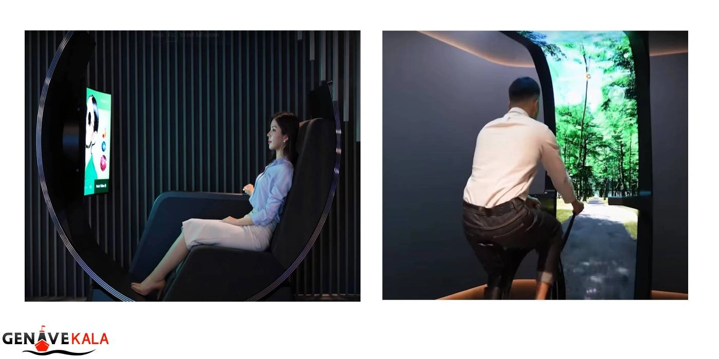 5: تلویزیون متحرک 360 درجه منحنی و صندلی متحرک ماساژور.