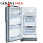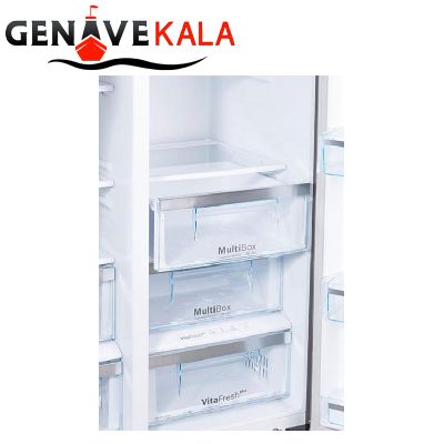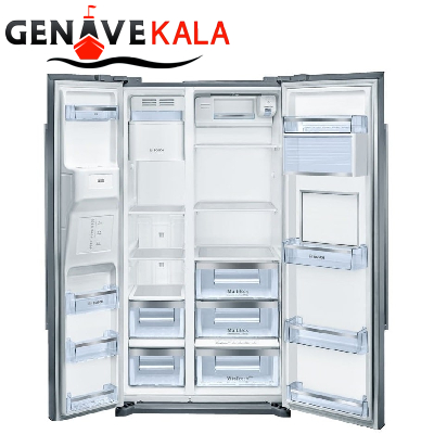 یخچال فریزر ساید بای ساید بوش مدل KAG90AW204 دارای طراحی زیبا و منحصر به فردی است که در کنار ظرفیت بالا و رده انرژی کم مصرف A+ و موتور اینورتر خطی آن، این یخچال را در لیست بهترین انتخاب ها رتبه بندی می کند. این یخچال فریزر دارای ظرفیت 30 فوت یا 522 لیتر است که به صورت مجزا گنجایش یخچال 359 لیتر وگنجایش فریزر 163 لیتر از آن را در بر گرفته اند. طراحی بدنه ی این یخچال بسیار شیک و زیبا پسند نمایان می شود و جنس آن فولاد ضد زنگی است که از آن یک بدنه ی محکم و خاص می سازد. این یخچال 30 فوت از سری یخچال های شرکت BOSCH، دارای ارتفاع 1770 میلی متری و عمق 720 میلی متری و پهنای 910 میلی متری هستند. در یخچال KAG90AW204 بوش، درب سمت راستی نمایانگر یخچال است که به سمت راست باز می شود و دارای 3 طبقه و 3 کشو و لامپ LED بوده و روی آن Home Bar دیده می شود. درب سمت چپی نشانگر فریزر است که به سمت چپ باز می شود و در آن از 3 طبقه و 2 کشو استفاده شده و روی آن سیستم یخ ساز و آبریز قرار دارد.