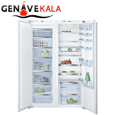 در بخش طراحی یخچال میتوان به استحکام آن اشاره کرد که آن را در برابر هرگونه ضربه ایمن میسازد، درب یخچال به سمت راست باز می شود و همچنین روی بخش داخلی درب آن از 6 طبقه شیشه مستحکم استفاده شده است که میتوان مواد و وسایل کوچک سایز متوسط را در آن قرار داد. طبقات داخلی یخچال 7 عدد هستند که 4 عدد آن ها قابلیت تنظیم ارتفاع را دارا هستند، جنس آن ها بسیار مستحکم بوده و میتوانند وزن های تقریبا سنگین را تحمل کنند. یخچال دو قلو بوش 40 فوت KIR81AF30-GIN81AE30 از یک طبقه فلزی هم برای قرار دادن بطری های نوشیدنی استفاده می کند و همچنین باید به این نکته هم اشاره کنیم که این یخچال از دو کشو نشکن و ضد برفک هم بهره مند شده است. یخچال دو قلو بوش BOSCH مدل KIR81AF30-GIN81AE30 در بخش طراحی فریزر هم بسیار مفید عمل کرده است و نمره قبولی می گیرد. درب فریزر به سمت چپ باز می شود ودر بخش داخلی این فریز از طبقات شیشهای استفاده نشده است و به جای آن ازکشوهای مستحکم بهره برده اند، این یخچال بوش از 5 کشو شیشه ای نشکن و شفاف استفاده کرده است که بتوان به راحتی مواد داخل آن را بدون باز کردن، مشاهده کرد. همچنین این فریزر از 2 کشو بزرگ یا Big Box هم بهره مند شده که ظرفیت بسیار بالایی دارد و میتواند حجم زیادی از مواد را داخل خود جای دهد. باید به این نکته هم اشاره کرد که کشو ها ضد برفک هستند و میتوان از بابت وجود برفک خیال مشتری راحت شود.