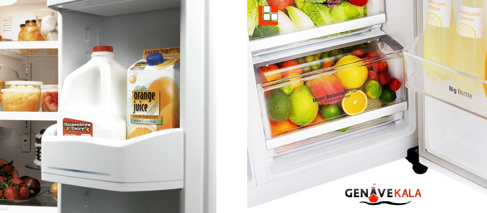 LED های داخلی یخچال ساید بای ساید جنرال مدل GSE25GSHSS فضای درون یخچال را بسیار روشن ساخته است تا دیگر مجبور نباشید در تاریکی و یا با نور کم به دنبال خوراکی های مدنظر خود بگردید. کشو های بزرگی که در یخچال در قسمت پایین قرار داده شده اند برای نگه داری میوه ها و یا خوراکی هایی که حساس هستند و زودتر خراب می شوند مناسب است و با حفظ رطوبت و دمای مناسب مختص به خود، آن ها را همانند لحظه اول سالم و تازه نگه می دارد.