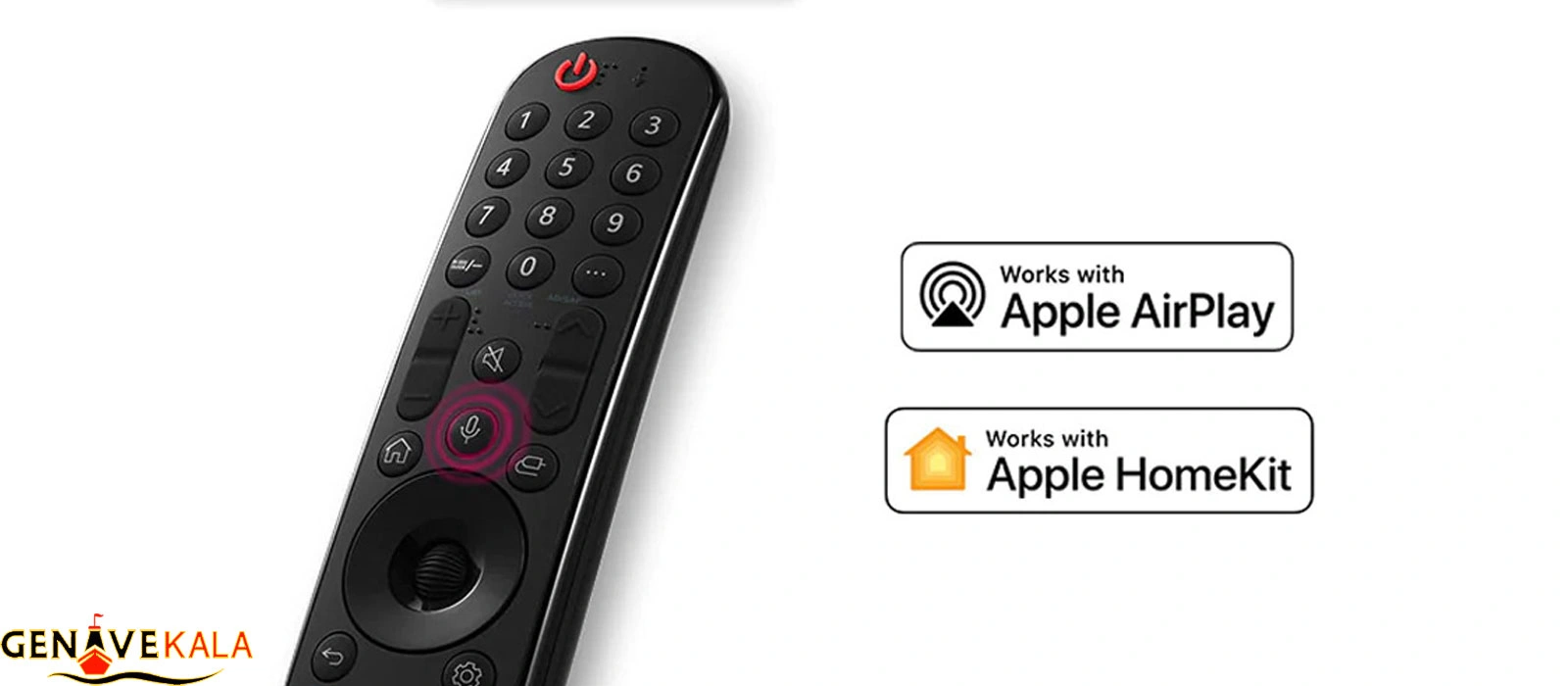 علاوه بر آن یک ریموت کنترل اسمارت و جادویی در این تلویزیون قرار دارد که دارای میکروفون داخلی است و شما از طریق صدی خود می توانید این دستگاه را کنترل و مدیریت نمایید. با وجود این میکروفون داخلی و یک اشاره گر و دکمه اسکرول کار با تلویزیون بسیار راحت شده است. توجه داشته باشید که اقلام همراه این دستگاه شامل: باتری، کابل برق، دفترچه راهنما می باشد.