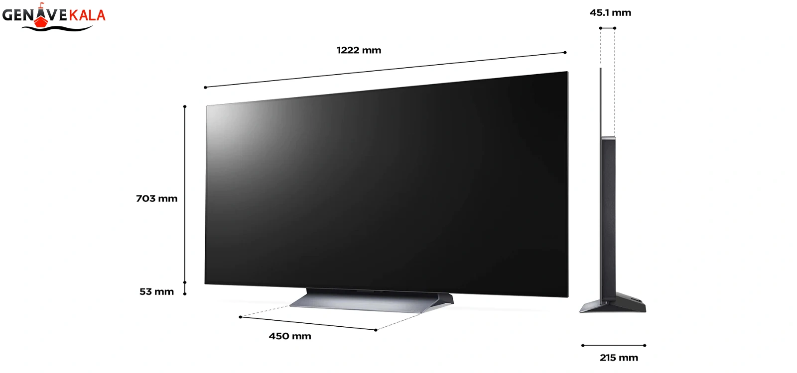تلویزیون الجی مدل OLED 55 C2 دارای طراحی مینیمال و ظریف می باشد، شما در هنگام تماشا کردن برنامه مورد علاقه خود بدون مزاحمت فریم و یا گوشه های آن لذت دیدن چند برابر را تجربه خواهید کرد. اندازه آن در سایز های 55، 65، 77، 83 اینچ وارد بازار شده که با توجه به محیط استفاده از تلویزیون اندازه آن را انتخاب کنید، سایز اینچ های کوچک آن در محیط های کوچک مورد استفاده و هرچه سایز بزرگ تر بشود در مکان هایی با محیط فضای باز تر مورد استفاده قرار می گیرد. پایه ی آن در وسط تلویزیون طراحی شده، که به راحتی روی سطوح صاف مانند میز تلویزیون قرار می گیرد و امکان نصب روی دیوار به راحتی امکان پذیر می باشد، شما بنا به سلیقه خود می توانید آن را در هر جایی از خانه تان قرار بدهید. کناره های دور تلویزیون بسیار باریک بوده که زیبایی آن را چند برابر می کند، هر سری LG تلویزیون های ظریف و باریک تر را وارد بازار می کند تا با سلیقه کاربران جور در بیاید و با هر دکوراسیون هم خوانی داشته باشد. رنگ مشکی یکی از رنگ های مرغوب در بین افراد می باشد که استفاده این رنگ بسیار بالا بوده برای همین تلویزیون ال جی اولد C2 نیز به رنگ مشکی طراحی شده است.