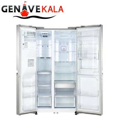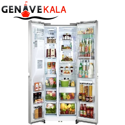 طراحی یخچال ساید بای ساید ال جی به این صورت است که قابلیت ست شدن با هر آشپزخانهای را دارد و از ظاهری کاملا شیک و عالی برخوردار است. علاوه بر طراحی زیبا، از طراحی کاربردی نیز برخوردار است مثلا با داشتن یخ ساز روی درب سمت راست یخچال دسترسی آسان به یخ و آب سرد را امکانپذیر کرده و مصرف آب در روز بیشتر تکرار میشود با این طراحی دیگر هوای سرد داخل یخچال هر بار خارج نمیشود. این یخچال ال جی دارای یک قسمت یخچال و یک قسمت فریزر دارد که توسط یک خط به صورت عمودی از یک دیگر جدا شدهاند و نیز دارای دو درب است که هر قسمت فریزر و یخچال دارای درب خود هستند که جدا از هم باز میشوند و با این کار از هدر رفتن هوای سرد در قسمت دیگر یخچال و همچنین صرف انرژی برای خنک کردن دوبارهی یخچال در صورت باز بودن هر کدام از دربها جلوگیری میشود و روی این یخچال دو درب دستگیره وجود ندارد و از دستگیرههای مخفی در وسط یخچال استفاده کرده است. در قسمت یخچال آن در قسمت پایینی آن دارای 2 جعبه شیشهای و در قسمت بالایی آن 5 بخش برای نگهداری مواد دارد و قسمت فریزر آن نیز دارای 3 جعبهی شیشهای در پایین و 3 بخش بر آن است. روی فضای داخلی دربهای آن نیز دارای بخشهای مختلف است.