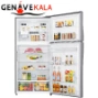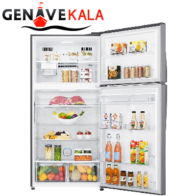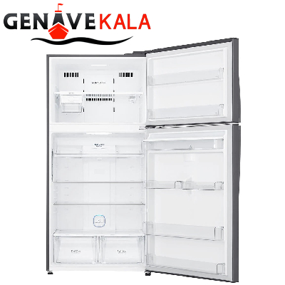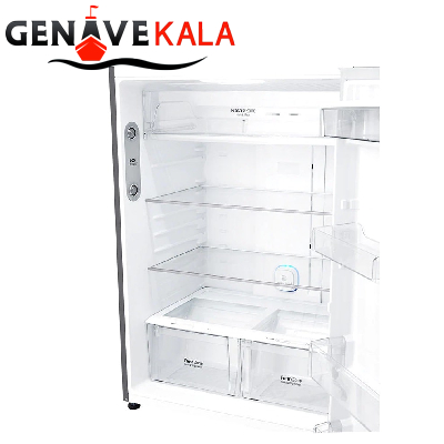 در این مدل یخچال قسمت بالا فریزر بوده که روی درب آن صفحه نمایش لمسی LED برای اطلاع از درجه دما یخچال و کنترل آن و همچنین دسترسی به فناوری ها و فعال و غیر فعال کردن آنها، طراحی داخلی فریزر بسیار ساده و جادار می باشد که دارای دو طبقه در داخل و 2 طبقه روی درب آن قرار گرفته. قسمت پایین که یخچال آن می باشد خروجی آب سردکن اعمال شده و طراحی داخلی آن بسیار جادار و شیک می باشد که دارای 4 طبقه و دو کشو می باشد و بر روی درب آن نیز 4 طبقه برای نگهداری مواد غذایی طراحی شده، قسمت بالای درب یخچال مخزن آب سردکن می باشد که به صورت دستی عمل می کند.
