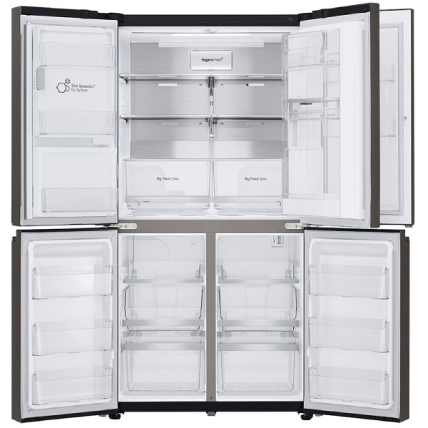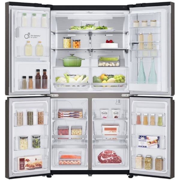 این یخچال فریزر با ظرفیت 889 لیتر طراحی شده است که 482 لیتر آن مربوط به قسمت یخچال و 407 لیتر آن به قسمت فریزر اختصاص دارد. یخچال این مدل در قسمت بالا و فریزر در قسمت پایین قرار دارد. یخچال این دستگاه دارای 3 طبقه و 2 کشوی بزرگ برای میوه و سبزیجات است که به نام Big Fresh Zone شناخته میشوند. این کشوها قابلیت تنظیم رطوبت دارند تا بتوانید شرایطی مناسب برای نگهداری میوهها و سبزیجات فراهم کنید و تازگی آنها برای مدت بیشتری حفظ شود. طبقات یخچال از شیشه مقاوم به حرارت ساخته شدهاند، بنابراین میتوانید با خیال راحت از آنها برای نگهداری مواد غذایی سنگین استفاده کنید. یکی از این طبقه ها دارای قفسه تاشو Folding Shelf است به این صورت که شما می توانید طبقه را تا کنید و جا برای مواد غذایی دیگر باز کنید.