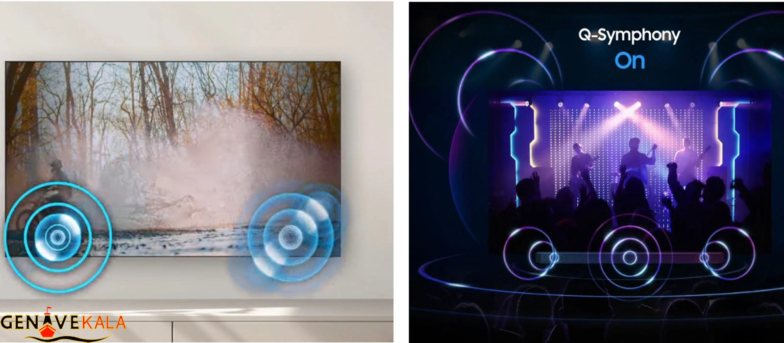 تلویزیونهای سامسونگ نسل جدید با استفاده از فناوریهای پیشرفته تجربه صوتی بینظیری را ارائه میدهند. در Q70C در کنار یک کیفیت تصویر بالا شاهد صدایی بسیار واضح و شفاف خواهید بود. سیستم صوتی این مدل دو کاناله بوده که دارای قدرت خروجی صدا 20 وات هستند. این میزان صدا برای ابعاد 55 اینچ مناسب بوده ولی شما به دلخوا خود می توانید انواع نوار صوتی را به صورت کابل و بلوتوث به تلویزیون متصل نمایید. فناوری Q-Symphony امکان ترکیب صدای تلویزیون و ساندبار را فراهم کرده و با استفاده از آن صداهای تلویزیون و ساندبار به طور همزمان پخش میشوند و صدای بلندتر و با کیفیت بهتری ایجاد میشود