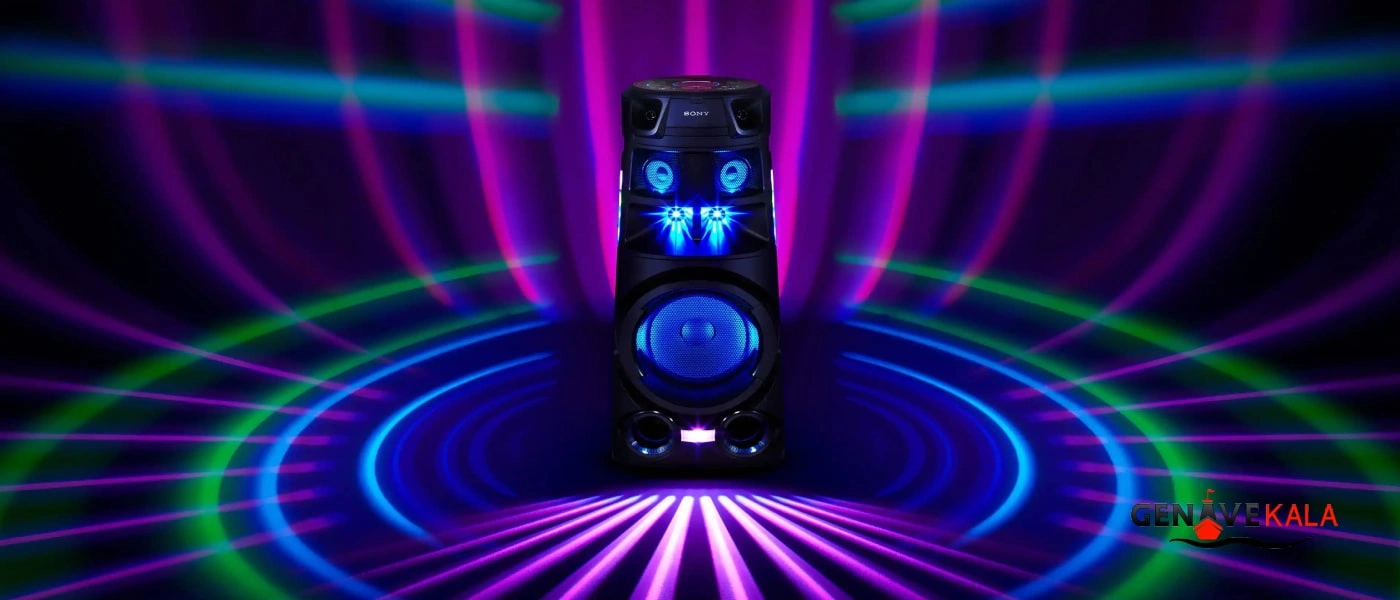 شیک 1800 وات سونی MHC-V83D دارای ویژگیهای زیادی است که در جهت ارائهی خدمات بهتر تلاش کرده است. این شیک سونی V83 از قابلیتهای تقویت صدا و پاکسازی صدا بهره میبرد و نیز برای دسترسی سریع و آسان از قابلیتهای نظیر بلوتوث، NFC و ... بهره برده است. شیک سونی MHC-V83D قابلیت پخش صدا و تصویر را دارد زیرا از دیسکهای DVD و CD پشتیبانی کرده است و با متصل کردن آن به تلویزیون، میتوانیم تصاویر را نمایش دهد. طراحی این سیستم صوتی 1800 وات MHC-V83D خیلی زیبا و شیک است که برای حمل و نقل آسان آن نیز در پایین خود دارای چرخهایی است و میتوانید آن را جابجا کنید.