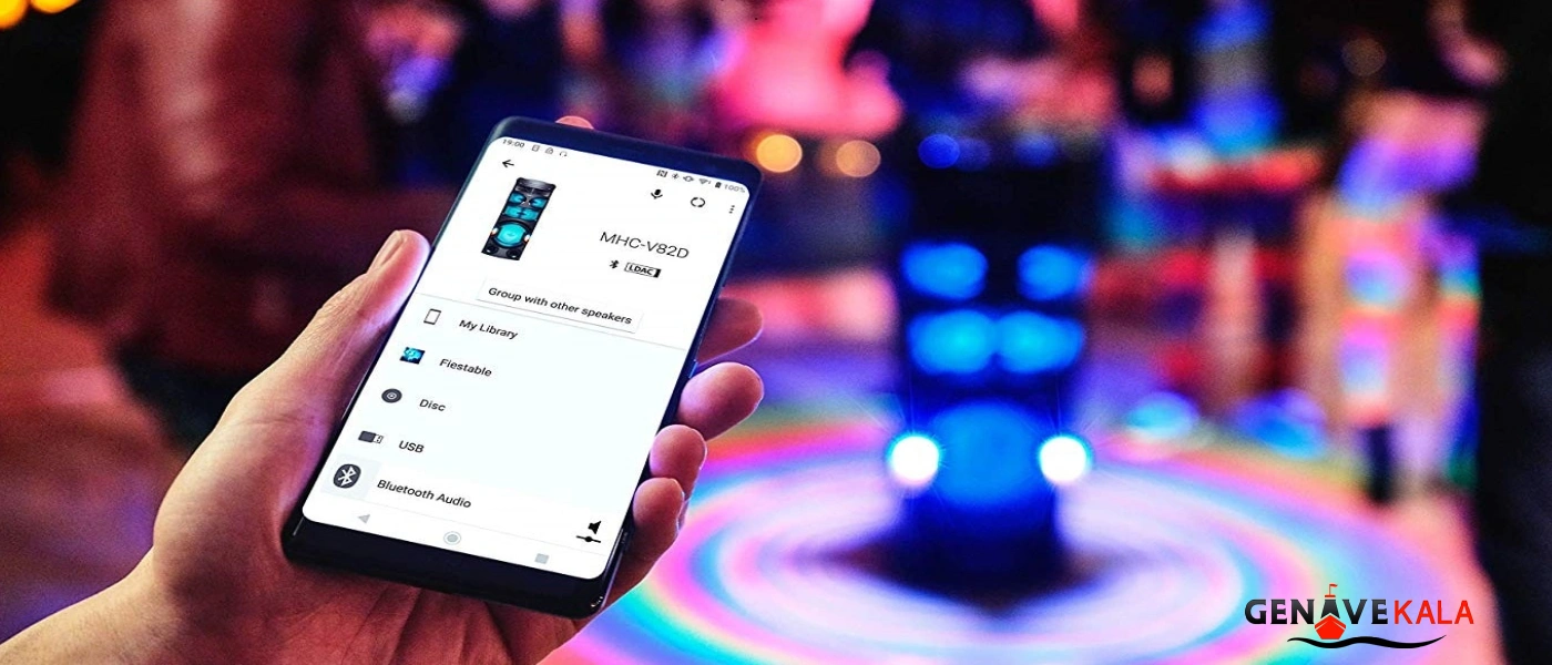 از دیگر قابلیتی که امکان این را برای شما مهیا میکند که بدون کابل به شیک مدل MHC-V90DW متصل شوید، پشتیبانی از قابلیت NFC است که با داشن قابلیت NFC در تلفن همراه خود میتوانید به این شیک سونی متصل شوید و محتوا را سریع انتقال دهید. قابلیت دیگری که سریعتر از این قابلیتها مثل بلوتوث عمل میکند، داشتن LDAC است و از پخش با کیفیت توسط این قابلیت لذت ببرید. این شیک 2400 وات سونی قابلیت سازگاری با برنامههای Fiestable برای کنترل این سیستم صوتی از راه دور به کار میرود و نیز برنامه های Music Center نیز با همین عملکرد کار خود را انجام میدهد با این تفاوت که برنامهی Fiestable برای تلفن همراه اپل و سیستم عامل IOS و برنامهی Music Center برای سیستم عامل اندروید کاربرد دارد.