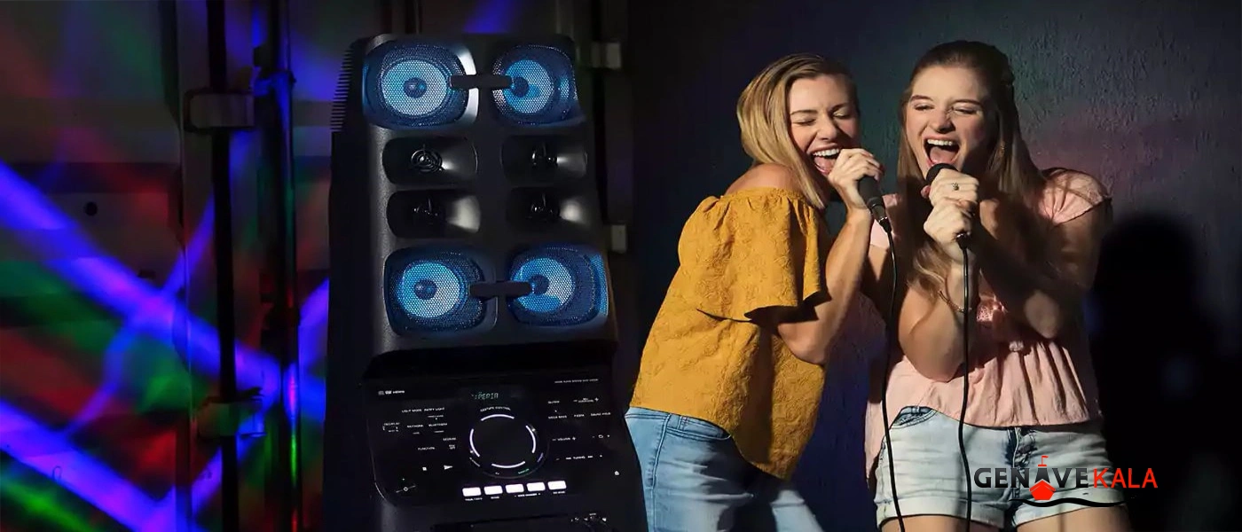 گفتیم دوستان به یاد یک فناوری حیرت آور این شیک 2400 وات V90 افتادم که جالب است بدانید. شیک MHC-V90DW سونی با تکنولوژی کارائوکه یا Karaoke توانسته است سرگرمی جالبی را برای شما مهیا کند. با این فناوری Karaoke میتوانید با متصل کردن میکروفون و پخش موسیقی صدای خواننده را پایین بیاوردید و همراه موزیک آهنگ بخوانید و لحظات جالبی را با دوستان خود تجربه کنید.