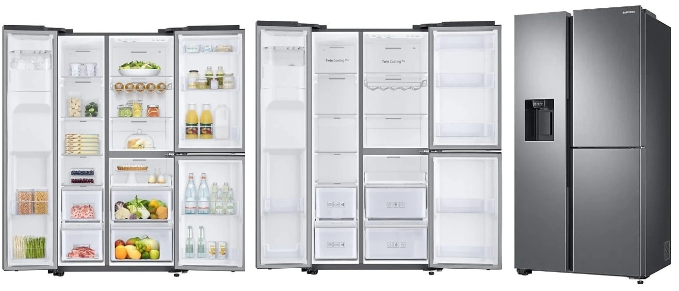 یکی از جزئیات مهم در هر کالایی ظاهر و طراحی آن بوده زیرا کاربران با توجه به طراحی محصول مورد نظرشان را انتخاب و یا خریداری می نمایند زیرا طراحی شیک در همه جا و در دکوراسیونی تاثیر زیادی دارد. این مدل یخچال ساید بای ساید به رنگ نقره بوده و رنگی مینیمالیستی بوده که با هر دکوراسیونی هم خوانی دارد. دارای 3 درب می باشد که بخش فریزر در قسمت چپ و دارای یک درب می باشد، قسمت راست آن بخش یخچال می باشد که دارای دو درب بوده، بر روی درب فریزر یخساز و آبریز اعمال شده. طراحی داخلی بسیار جادار بوده به طوری که به راحتی می توانید تمام مواد غذایی را در آن قرار دهید.