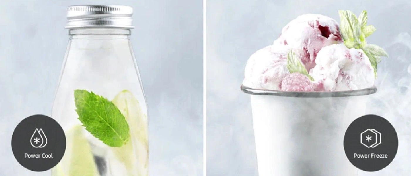 فناوری انجماد قوی Power Freeze در عملکرد فریز مواد غذایی بسیار تاثیر گذار بوده، شما اگر بخواهید مواد غذاییتان را فریز کنید قطعاً می خواهید کیفیت غذایی آن نیز کاهش نیابد و تغییر نکند این فناوری مواد غذایی شما را در زمان بسیار کمی منجمد می کند و همچنین باعث می شود کیفیت غذایی همان گونه که هست باقی بماند، شما با فعال کردن این فناوری می توانید به سرعت مواد مانند گوشت و... را منجمد نمایید. در ادامه فناوری خنک کنندهی پر قدرت Power cooling در یخچال مدل RS50 یک فناوری منحصر به فردی می باشد که با فعال کردن آن در زمان کمی مواد داخل یخچال از جمله نوشیدنی ها را خنک می کند و این عمل به نگهداری مواد در زمان طولانی با حفظ کیفیت غذایی کمک می کند.