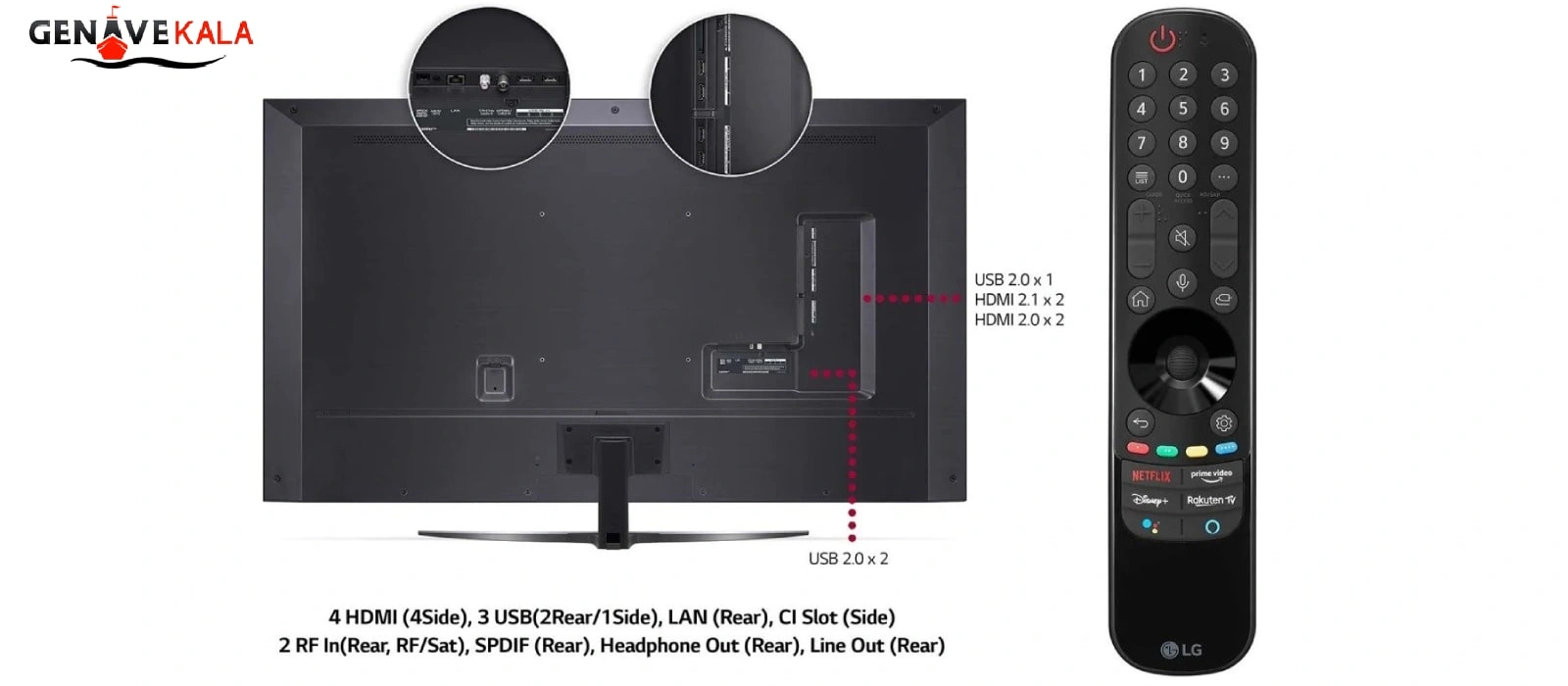 تلویزیون نانوسل LG مدل 50NANO76 در قسمت اتصالات دارای 3 پورت HDMI و 2 پورت USB می باشد که این امکان را برایتان فراهم آورده تا در زمان های مورد نیاز از آن بهره ببرید. امکانات بسیار بیشتری در جهت نیاز شما از قبیل دستیار های صوتی و هشدار های ورزشی و همچنین قابلیت هوشمند LG ThinQ می باشند، در این محصول قرار گرفته اند.