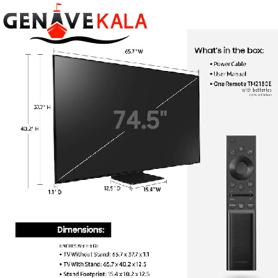 تلویزیون هوشمند سامسونگ به سیستم عامل تایزن مجهز شده و همانند گوشی همراه که سیستم عامل دارند از برنامهها مورد نیاز خود و قابلیتهای این سیستم عامل میتوانید استفاده کنید و برای استفاده از قابلیت اتصال راحت تلفن همراه با این تلویزیون 75 اینچ سامسونگ از ویژگی SmartThings به دیگز قابلیتهای خود اضافه کرده است. طراحی NeoSlim این تلویزیون 75 اینچ SAMSUNG امکان هماهنگی با هر فضای خانهای دارد که حاشیههای باریک و خیلی نازک آن نظر هر کاربری را به خود جلب میکند و تمرکز کامل بر روی تصاویر پخش شده را میتوانید داشته باشید. و همچنین پایهای به شکل صفحه در وسط تلویزیون قرار گرفته است و با یک خمیدگی به پشت تلویزیون متصل شده است و یکی از شیکترین پایهها را دارا است.