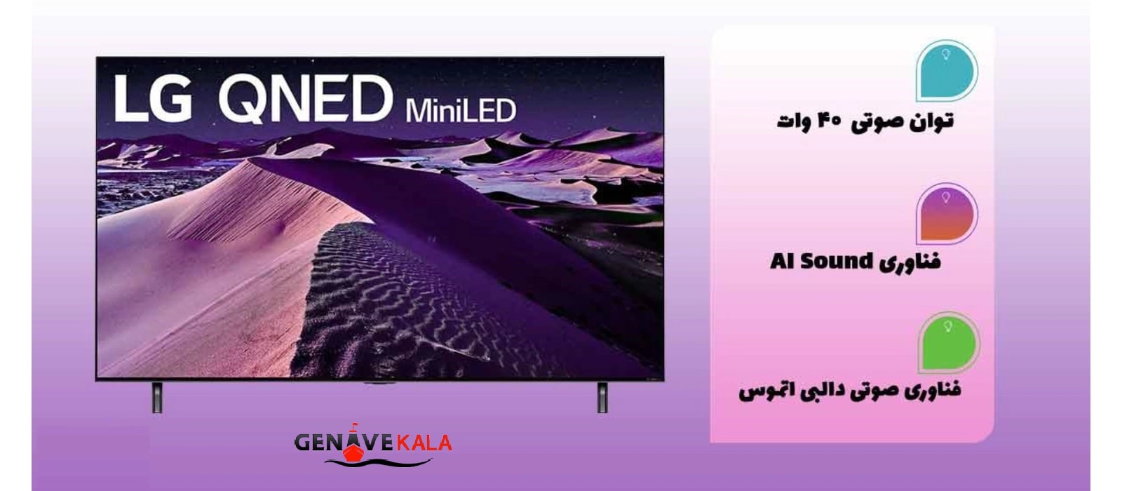برای لذت بردن از صدای دلنشین و شنیدنی تلویزیون، باید یکی از نمونه های با کیفیت را انتخاب نمود. تلویزیون 86 اینچ ال جی مدل 86QNED85 از سیستم صوتی با کیفیت با قدرت خروجی صدای 40 وات بهره می برد. تکنولوژی هایی در جهت تقویت صدا و ارتقای سطح وضوح صدا در تلویزیون مورد نظر توسط شرکت سازنده آن که LG می باشد فراهم شده اند تا مخاطب، بهترین و ناب ترین تجربه را از این تلویزیون خارق العاده به دست آورد...