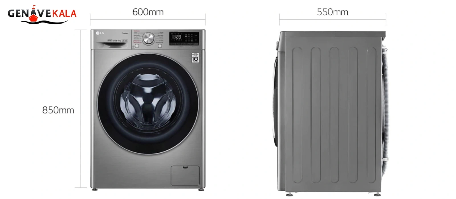 درب این محصول از جنس شیشه حرارت دیده است که در برابر ضربه و آسیب بسیار مقاوم است و می توان از وجود این درب به دلیل دوام بالای آن در لباسشویی خود تا زمان های طولانی استفاده کرد. دیگ موجود و ساخته شده در این لباسشویی، از نوع الماسه ضد خش و ضد لکه است که با بهداشتی بودن آن دیگر نگران آلوده بودن لباس ها نباشید. لباسشویی LG با طراحی جدید و خاصی که دارد در آشپزخانه ها خواهد درخشید و با توجه به اندازه و ابعاد مناسب آن که ارتفاع و عرض 600×850 و عمق 550 میلی متر است به راحتی در میان کابینت ها و یا هر جای دیگر قرار می گیرد.
