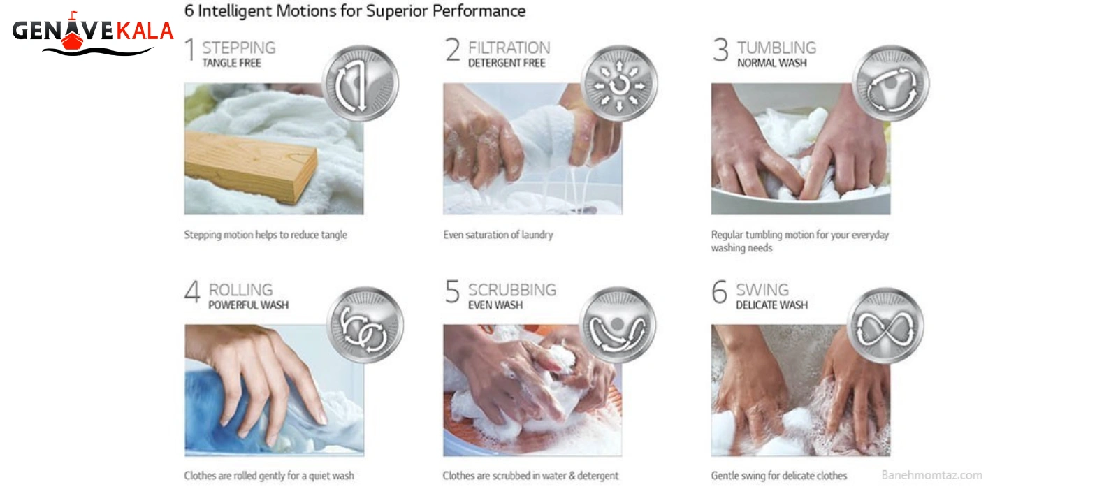 تکنولوژی جدید DD motion6 یا 6 حرکت شستشو، الهام گرفته از همان شستشو های قدیمی با دست است. کمپانی LG با یک ابتکار خلاقانه، این لباسشویی مدل F4R5 آن را فوق العاده ویژه ساخته است. در این حالت لباس ها با 6 حرکت شستشو برگرفته از شستشوی دستی، فرآیند شستشو انجام می پذیرد. حرکات درام این محصول همگی به طور حرفه ای و ریزبینانه مورد بررسی قرار گرفته و در نهایت، موجب خلق این فناوری شده است.