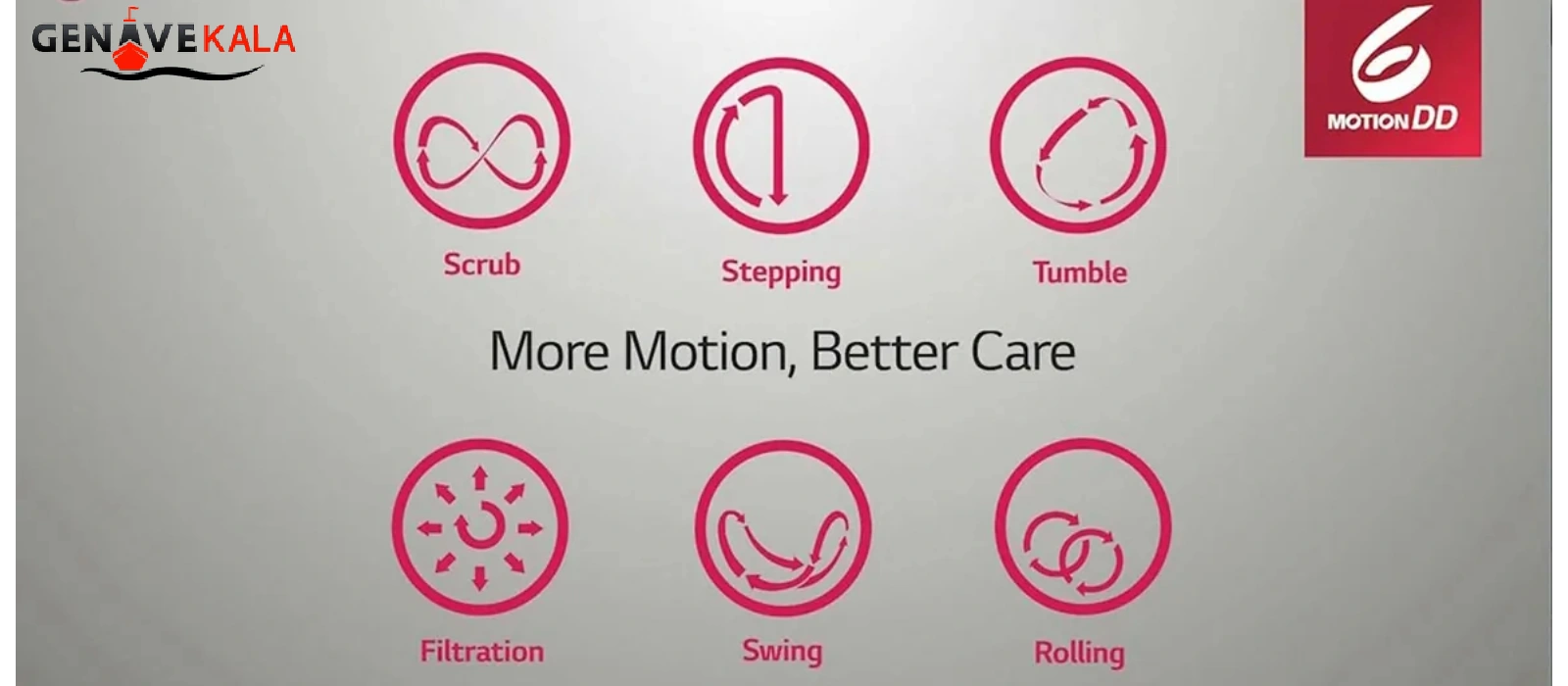 فناوری پیشرفته DD-Motion6 به معنای شستشوی لباس ها با 6 حرکت متنوع و مختلف است. در این حالت، لباس ها با حرکاتی همانند شستشو با دست شسته می شوند اما با این تفاوت که با وجود این محصول دیگر نیازی نیست که وقت و انرژی خود را تلف کنید و ساعت ها با شستشوی لباس ها با دست درگیر باشید. ماشین لباسشویی ال جی با مدل WV4149AVP در اختیار شما قرار گرفته است که شستشوی لباس های خود را با خیال راحت به آن بسپارید. در این محصول 6 حرکت فوق العاده کارآمد با قدرت فراوان بر روی لباس ها اعمال شده و سعی در تمیزی و لکه بری آن ها دارند و همانطور که گفته شد این حرکات، مانند شستشو با دست است شامل غلتاندن، تاباندن، سابیدن، پیچاندن، پله ای و آبکشی می باشد. این نوع شستشو میزان مصرف مصرف انرژی را کم کرده و شستشوی بهینه نام دارد.